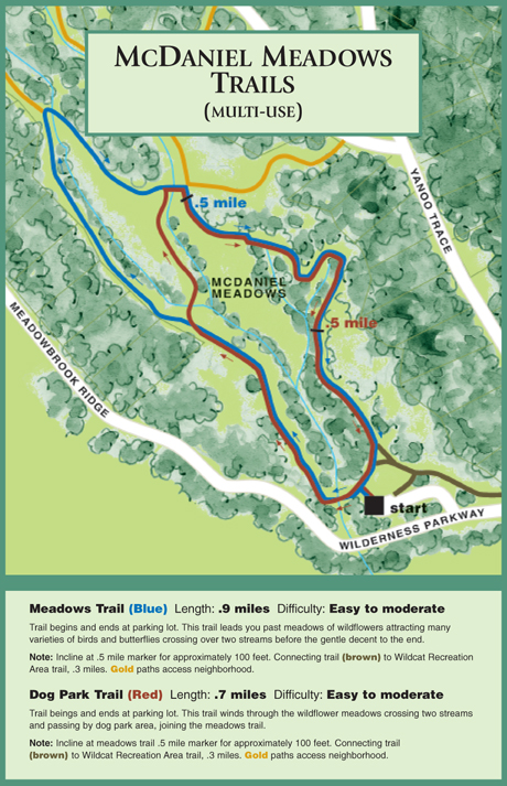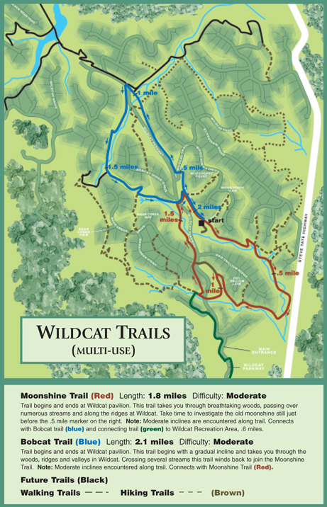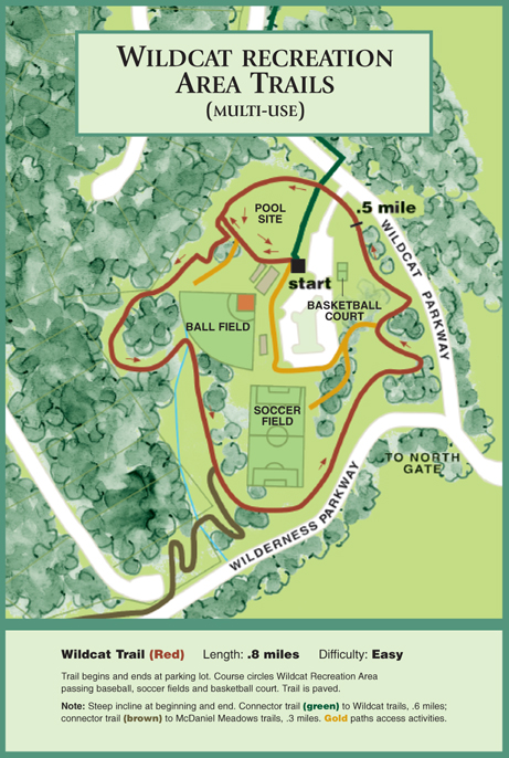 Big Canoe has over 20 miles of hiking trails weaving throughout it's 8,000 acres. The Nature Valley trails (7 total miles but easily broken into smaller hikes) provide great family hiking past two beautiful waterfalls, Lake Disharoon, and an old log cabin left from long before the area became known as Big Canoe. Alongside the length of the Nature Valley trails runs the Jeep Trail, a dirt road open to 4-wheel drives and a very popular attraction at Big Canoe.The Nancy Womack trail is an extension of the Nature Valley trail and is slightly more difficult with moderate climbing involved. The Indian Rock Park trail (.8 miles) weaves through ancient mounds of rocks left some 4,000 to 6,000 years ago by early Indians living in the area. It is not known exactly what purpose the "big piles of rocks" served but guesses have included wedding ceremonies, initiations and burial rituals. This trail turns into the Lake Petit trail and runs down to the edge of Lake Petit, Big Canoe's largest lake. The Wildcat (2.8 miles) and McDaniel Meadows (2.5 miles)trails are both easy walks through wildflowers and beautiful wooded scenery. The Wildcat trail is paved and is very popular among the "daily exercise and dog-walking" crowds.